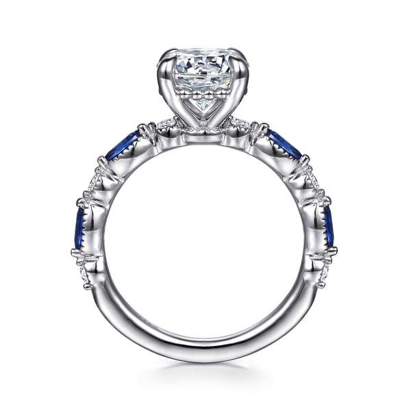 Cindie - 14K White Gold Round Sapphire and Diamond Engagement Ring